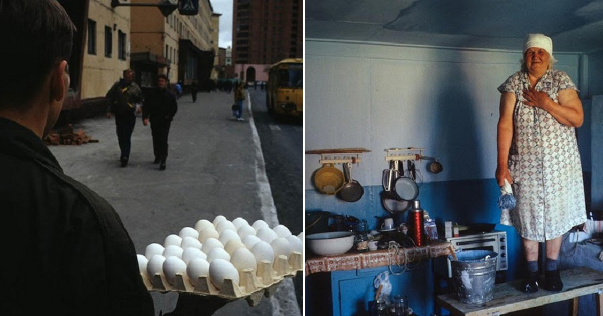 Французский фотограф Жан-Поль Гиллото побывал в России сразу после распада СССР и сделал серию цветных фотографий о жизни простых людей. На его снимках страна, которая ещё вчера была 1/6 частью суши, а сегодня не знает в каком направлении должна идти. Неуверенность в завтрашнем дне, страх перед будущим, безнадёжность – всё это читается в глазах героев фото.