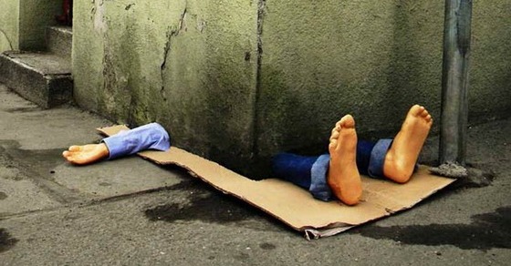 Что только не придумывает талантливый итальянец! И изображает ангела в виде спящего бомжа, и накрывает стол для нищих в мусорном баке, и заклеивает пластырем обшарпанные стены… У художника нет одинаковых проектов. Все идеи Fra.Biancoshock необычны и свежи, а исполнение – поистине блестяще, тем более, если учесть тот факт, что речь идет об уличном искусстве.