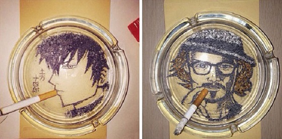 Японский пользователь социальных сетей Shinrashinge, известный под ником shin_geki, занимается созданием незатейливых рисунков, используя при этом оригинальный материал. Все свои работы он делает из сигаретного пепла.