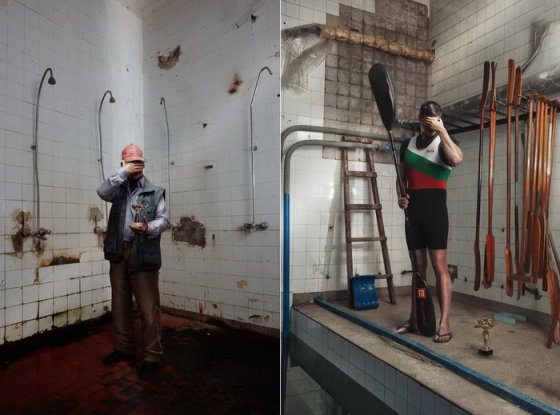 Фотограф Ивайло Петров (Ivaylo Petrov) презентовал несколько фотографий из цикла “Portraits of Shame”, на которых запечатлена гребная база в городе Видин на северо-западе Болгарии. В проекте приняли участие выдающиеся спортсмены, уроженцы этого города, которым удалось завоевать немало наград на международных соревнованиях. В одной руке у них кубок, второй – прикрывают глаза, ведь стыд – то самое чувство, которое испытываешь, глядя на упадок и разруху, царящую в спорткомплексе.