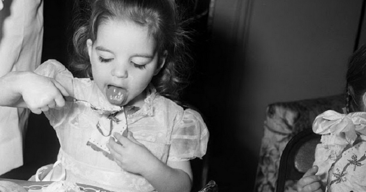 Лайза ест мороженое на рождественской вечеринке в доме Эдгара Бергена, куда она пошла с матерью Джуди Гарленд.