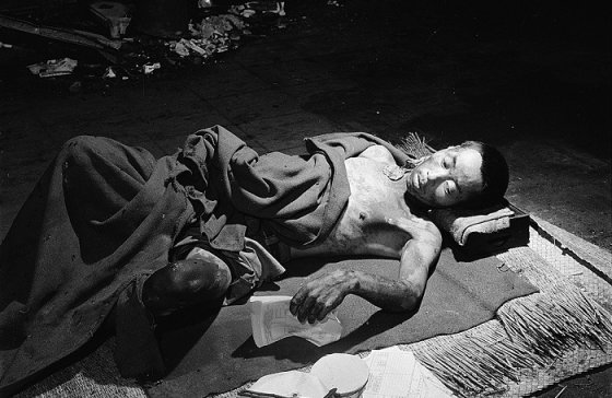 Жертвы атомной бомбардировки Хиросимы в госпитале в бывшем здании банка в сентябре 1945 года.