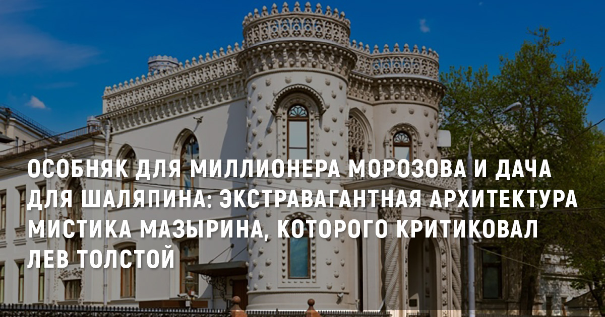 Особняк для миллионера Морозова и дача для Шаляпина: Экстравагантная архитектура мистика Мазырина, которого критиковал Лев Толстой
