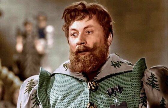 Кстати, именно Раневская уговорила чиновников из министерства культуры не снимать актёра с роли лесничего. Функционеры считали, что человек, снимавшийся в патриотических фильмах, не может появиться в детской сказке в роли лесничего, отчаянно боящегося своей сварливой и вздорной жены.