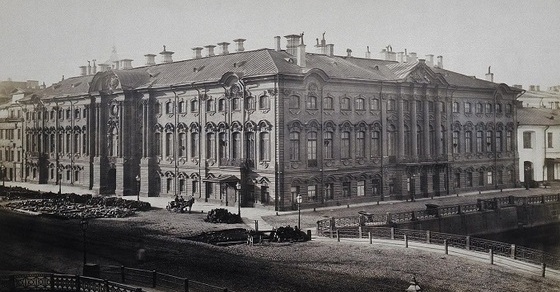 Фасад Строгановского дворца. Фотограф Вильям (Василий Андреевич) Каррик 1868 год.
