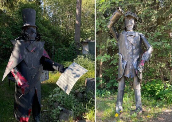 В фигурах, каждая из которых по стилю чем-то напоминает Железного Дровосека из «Волшебника Изумрудного города», легко можно узнать Петра I, Георгия Победоносца, Дона-Кихота, царя Василия Шуйского, Кощея Бессмертного и других реальных и вымышленных героев.