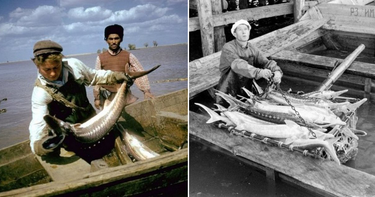 Фотографии, сделанные во время процесса добычи чёрной икры в Астрахани в 1960-е годы.