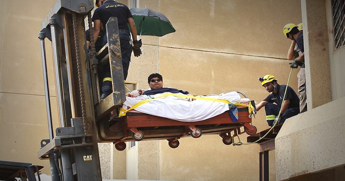 Супертяжеловес живет в Саудовской Аравии. В 2013 году король этого арабского государства приказал ему лечь в клинику: он оплатил лечение, а также доставку парня туда на военном самолете. После двух операций вес Халида снизился до 290 кг, а затем уменьшился еще на несколько десятков килограммов. В итоге Халид смог самостоятельно ходить.
