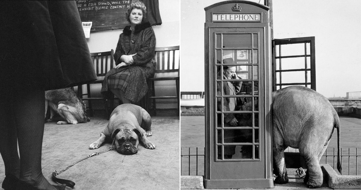 Индийский слонёнок втискивается в британскую телефонную будку, 1955 год.