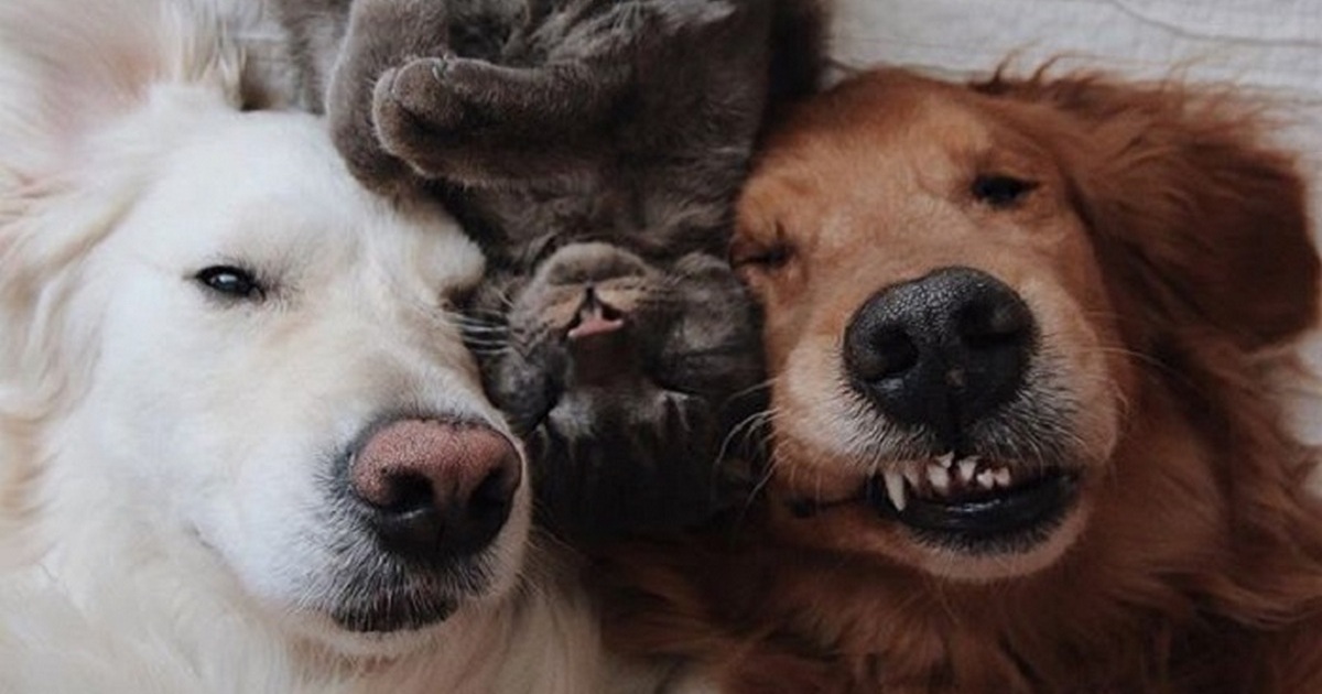 Трогательные фотографии неразлучной троицы четвероногих друзей.