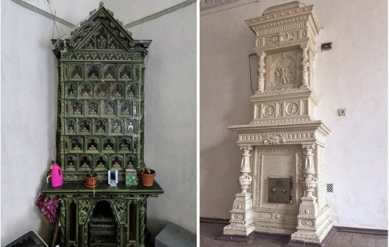 Печь, украшенная лепными фигурами.