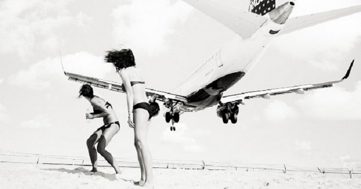 Первым делом - самолеты... Видимо, именно так решил про себя австрийский фотограф Йозеф Хофленер, отправляясь с сыном на пляж Maho Beach, который расположен рядом с взлетно-посадочной полосой международного аэропорта Принцессы Юлианы. Дело в том, что именно там самолеты пролетают над отдыхающими настолько низко, что у людей просто захватывает дух. Именно этот момент и пытался передать фотограф в серии черно-белых снимков, отдыхая на пляже с 2009 по 2011 года.
