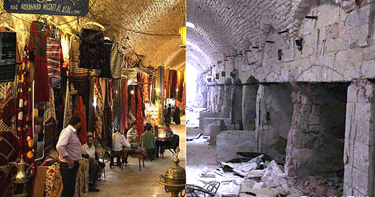 Там, где раньше стояли древние церкви, мечети и крепости, теперь лежат руины. Почти все достопримечательности, которые находятся в списке всемирного наследия ЮНЕСКО, были уничтожены или повреждены. Так, Великая мечеть Алеппо была сильно повреждена, и единственный минарет мечети был полностью разрушен. Стены Цитадели теперь пронизаны следами от пуль, а знаменитый рынок Аль-Мадина сгорел дотла. Этот некогда прекрасный шумный город стал символом ужасов последствия войны.