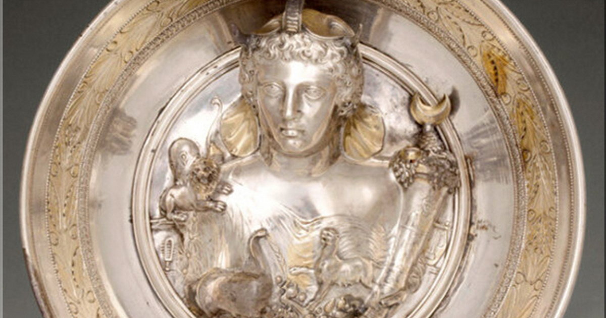 Вероятное изображение Клеопатры Селены II на позолоченном серебряном блюде из сокровищ Боскореале, I век до н.э.