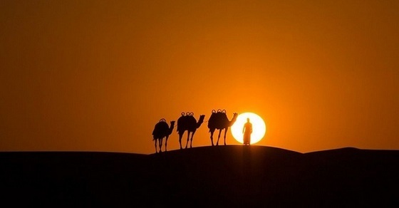 Одинокий погонщик верблюдов в пустыне ОАЭ. Фотограф - Rogel Tura.