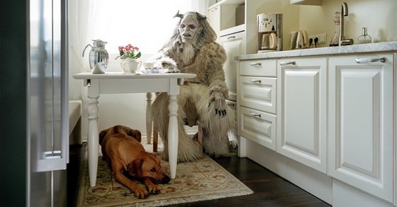 Фотограф этой серии - Клаус Пичлер (Klaus Pichler), а сам проект получил название "Только мы вдвоем" (Just the Two of Us). Эти фотографии с одной стороны совершенно гипнотизирующие, а с другой вызывают некоторую оторопь. Персонажи кажутся настолько неуместными в обычной домашней обстановки, что то вызывает определенный диссонанс. И даже не знаешь, то ли смеяться, что ли поморщиться. Но с другой стороны, часто ли вам доводилось видеть единорога в ванной? Эти фотографии - отличный шанс заглянуть в чужую жизнь, которую иначе бы никогда и никому не увидеть.