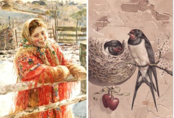 Эта птица была вестницей между миром живых и миром мертвых. В русских народных песнях ее называли ключницей, поскольку верили, что она приносит из-за моря ключи, которыми открывает лето и закрывает зиму. К Благовещению, когда ласточки возвращались из теплых краев, русские крестьяне пекли особые пироги с раскрытыми крыльями, называемые «ластовочками», и совершали обряды. Если же ласточка не возвращалась весной в прежнее гнездо, то это считали предвестием пожара.
