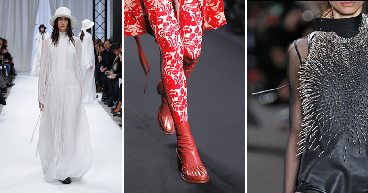 Тяжелые пальто сочетаются с прозрачными платьями, классические формы – с провокационной обнаженностью.