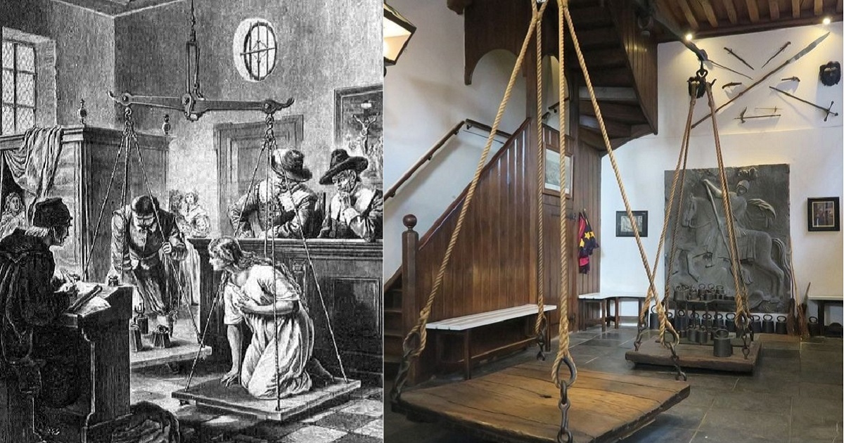 Суд над ведьмой через взвешивание. | Фото: amusingplanet.com.
