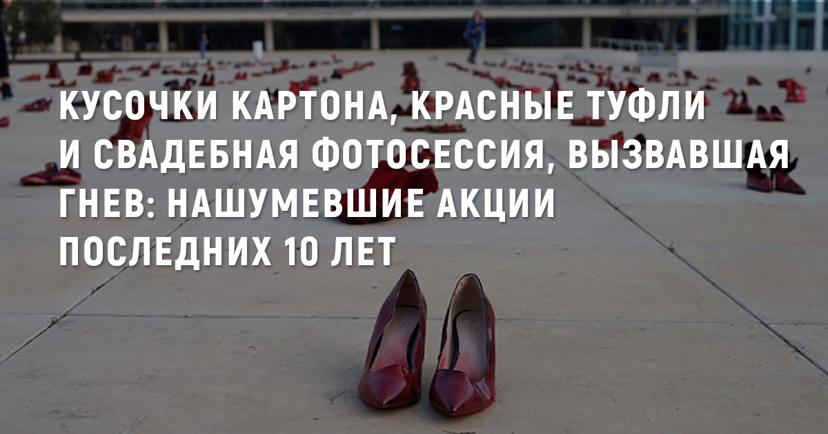 Кусочки картона, красные туфли и свадебная фотосессия, вызвавшая гнев: Нашумевшие акции последних 10 лет
