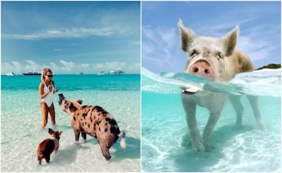 Выглядит это так – к небольшому островку в 143 километрах от Нассау подъезжает скоростной катер. Еще до того, как туристы ступят на берег, происходит знакомство со свинками – те, заметив гостей, бросаются в воду и плывут навстречу катеру. Свиньи – отличные пловцы, особенно если знают, что такой вид физической активности гарантирует получение чего-то вкусного. Это привычный ритуал для животных – и яркие впечатления для прибывших на остров впервые.