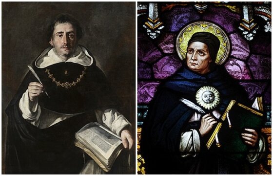 Слева направо: Деталь картины: Апофеоз святого Фомы Аквинского, Франсиско де Сурбаран, 1631 год. \ Фома Аквинский.