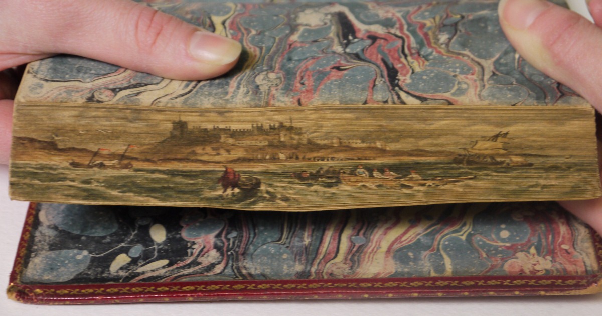 Первоначально передний край книги покрывался чернилами, он, как и корешок книги, служил для того, чтобы идентифицировать издание. В дальнейшем оформители стали наносить рисунки. В открытом положении понять, что изображено, было невозможно, но когда книгу захлопывали, появлялось четкое изображение. По сути, книга трансформировалась в настоящее произведение искусства.
