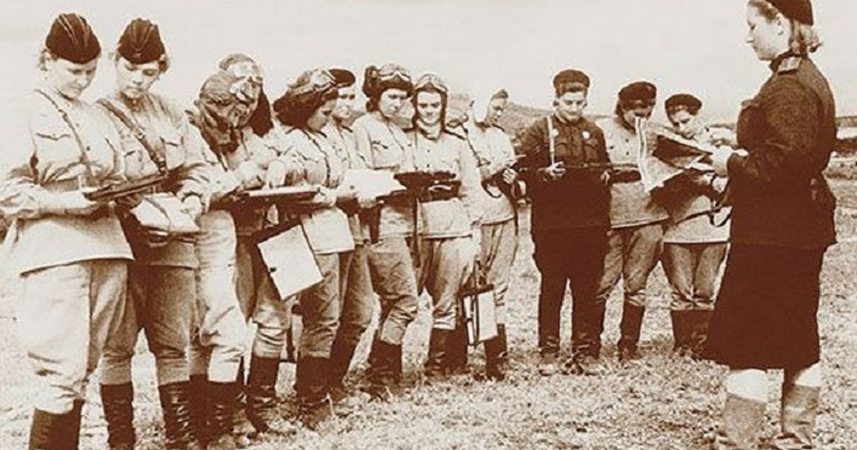 Командир гвардейской авиачасти ночных бомбардировщиков знакомит с боевым заданием летчиц.