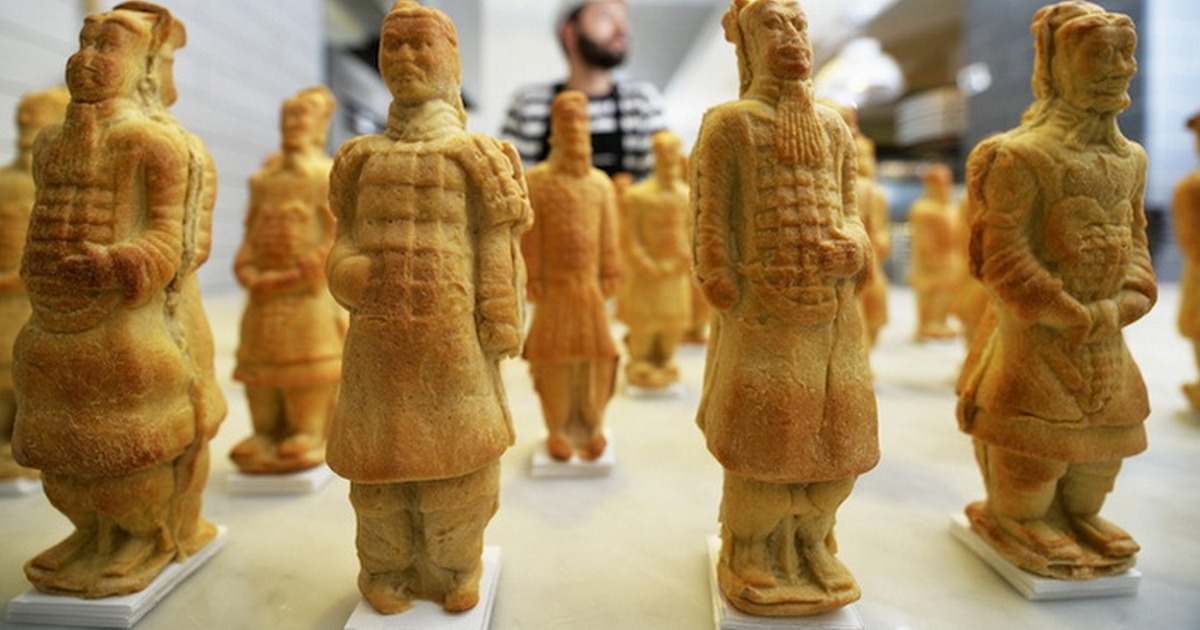 Необычный фуд-арт: "съедобные" терракотовые воины из теста для пиццы