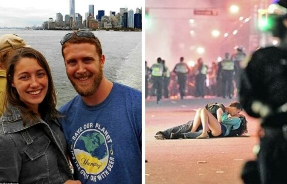 В следующий момент Алекс была просто сбита с ног одним из стражей порядка, она не помнит, как оказалась лежащей на земле, и ее состояние было близким к истерике. Скотт, желая ее успокоить, привлек к себе и поцеловал. С его слов, это было спонтанное решение, но единственное, что он мог сделать в той ситуации, когда Алекс была сильно напугана. В этот самый момент и щелкнул затвор камеры Ричарда Лема.