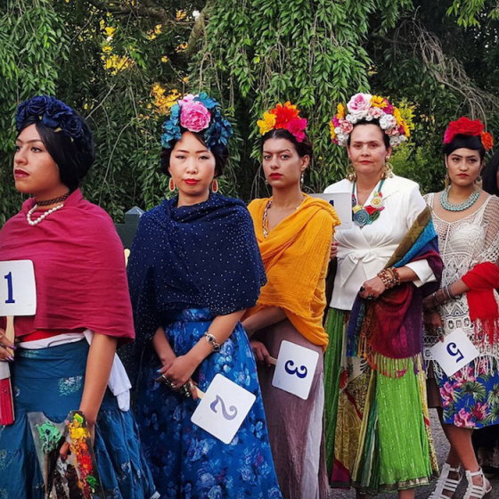 На празднике часто подают блюда, приготовленные по рецептам Фриды, звучит живая музыка мариачи, танцевальные коллективы демонстрируют свое мастерство, художники проводят мастер-классы и повсюду продаются сувениры.