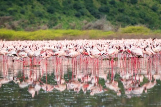 В осенний сезон дождей фламинго любят воды расположенного неподалеку кенийского озера Накуру, но в более засушливые месяцы они перемещаются в Богорию. Здесь розовую сказку можно увидеть круглый год. На озере птицы гнездятся и выводят птенцов. Число фламинго в Богории порой достигает полутора-двух миллионов!