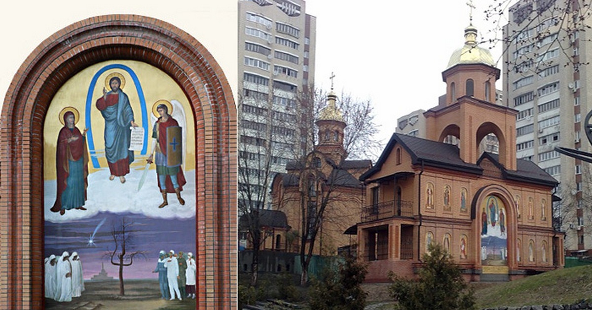«Чернобыльский Спас» на фасаде храма святителя Феодосия Черниговского в Киеве.
