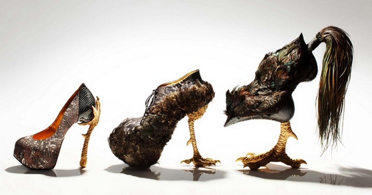 На создание новой коллекции дизайнера вдохновили картины японского художника 18 века Ито Якучу (Ito Jakuchu), который изображал на своих полотнах животных, птиц «с оттенком легкого безумия». Произведения Масая Кушино получились такими же. Хвост пони, мех, павлиньи перья – все это части необычной обуви.