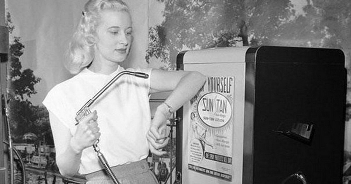 1949 — торговый автомат для искусственного загара. Прообраз современных соляриев — бросаешь 10 центов и "загораешь" 30 секунд.