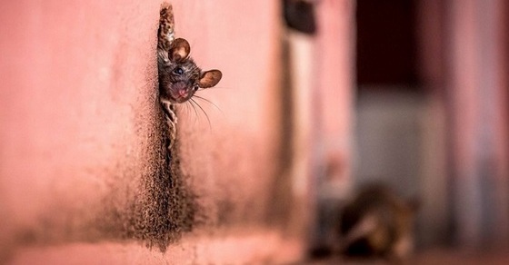 Мыша, которая вылезла из дырки в стене. Фотограф - Cezary Wyszynski.