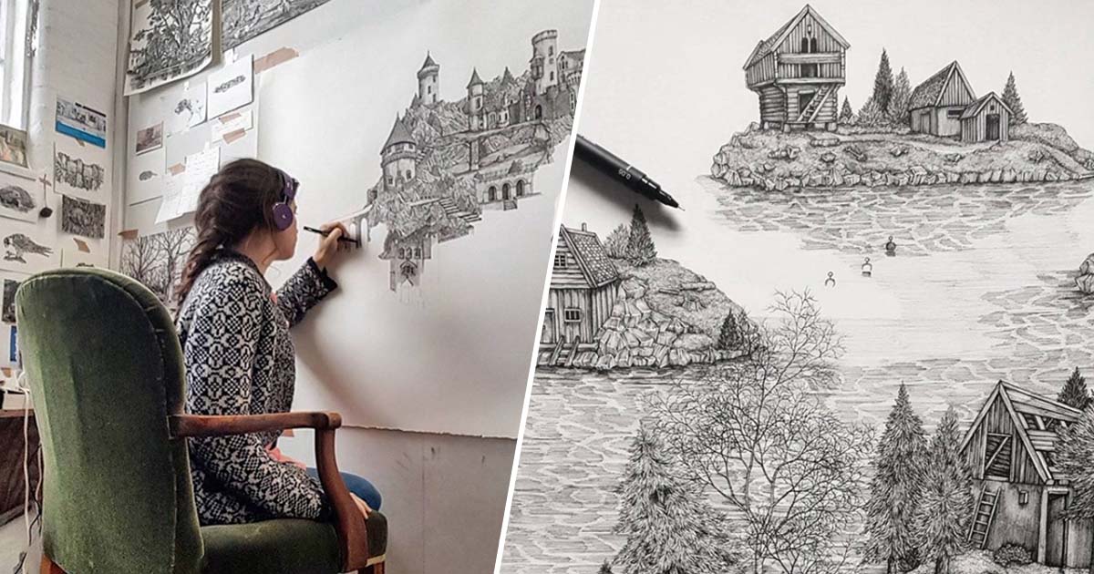 Фантазийные миры чернильной ручкой: Современная художница и ее огромные пейзажи