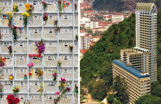 Во многих странах пытаются решить проблему захоронений, однако зачастую думают только об использовании земельных участков. Однако есть и те, кто решил строить кладбища не вширь, а ввысь. Так, в Азии популярность приобрели вертикальные кладбища.Во многих азиатских культурах распространены захоронения в могильных сооружениях, по форме напоминающих многоэтажные пагоды. В настоящее время вертикальные кладбища можно увидеть в Тайнане (Тайвань). В Гонконге кладбища часто строятся на склонах холмов с целью экономии места. В одном из японских городов местный бизнесмен даже открыл так называемый «отель для мертвых», туда родственники усопшего могут сдать тело, которое ожидает своей очереди в крематорий (из-за загруженности крематориев ожидание может затянуться надолго).