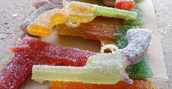 Револьвер со вкусом колы, автомат со вкусом яблока и вишни, пистолет со вкусом и ароматом киви, черной смородины, апельсина и банана, - эти лакомства на любой вкус и цвет не перестают манить и соблазнять внешним видом тех, кто еще не завтракал, и не прочь выпить чашку чая, закусив парой мармеладок в сахаре. Оружие, как всегда, выглядит великолепно, но под внешней шикарной оболочкой скрывается смертоносная сила, способная отправить в мир иной многие человеческие души. Вот и конфеты-пистолеты тоже таят в себе опасную загадку.