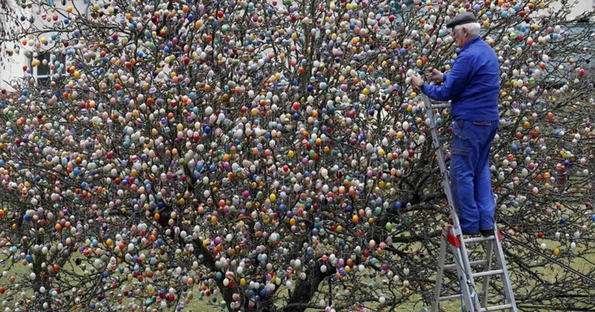 Для семьи Фолькера Крафта (Volker Kraft) Пасха – один из самых ожидаемых и любимых праздников в году. На протяжении 50 лет Фолькер вместе со своей семье наряжает символическое пасхальное дерево, развешивая на ветвях раскидистой яблони крашеные яйца. В этом году энтузиаст установил личный рекорд, использовав для декора 10 тысяч писанок!