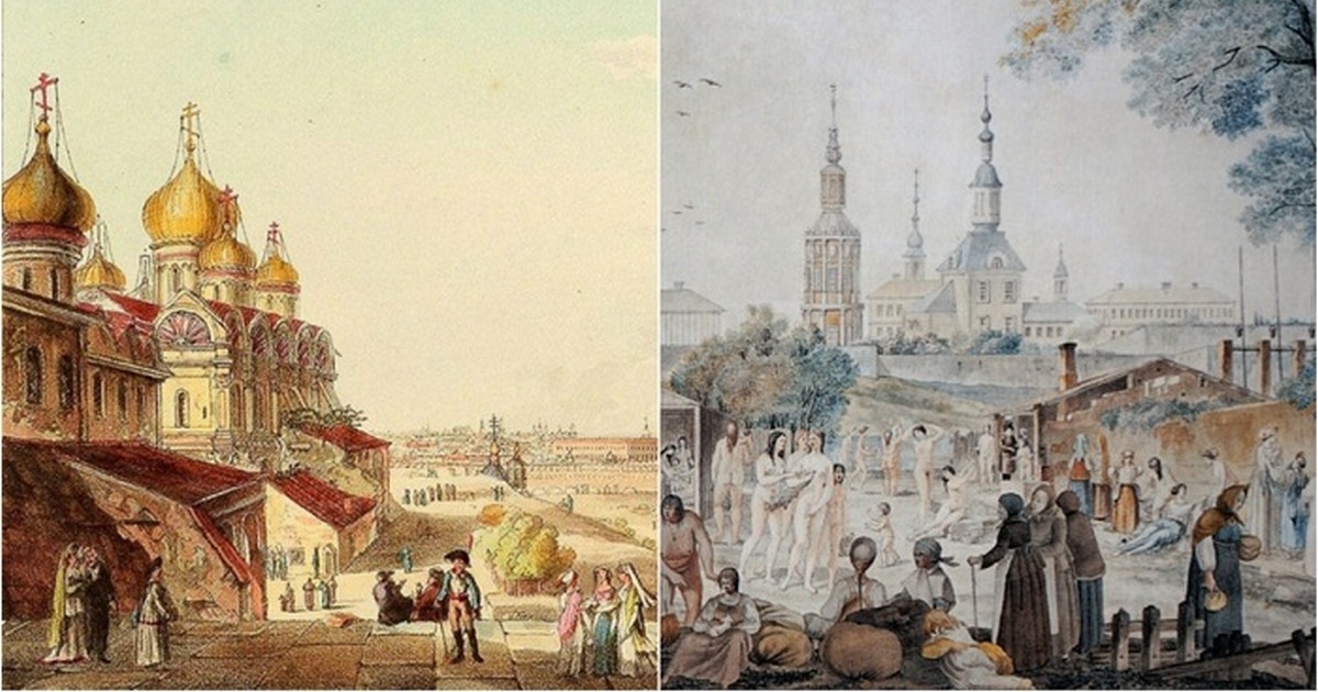 Литографии, на которых изображена Москва, какой она была 200 лет.