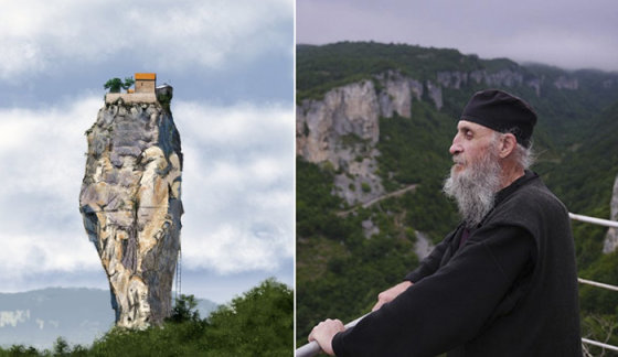 Монах Максим живет в одиночестве на вершине скалы.