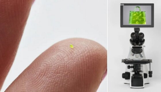 Крошечная сумочка была создана из смолы с помощью метода двухфотонной полимеризации. Для работы привлекали специалистов, знающих толк в производстве миниатюрных предметов. Говорят, несколько первоначальных образцов сумочки команда все-таки умудрилась потерять. Итоговое изделие, представленное на суд общественности, имеет размеры 657*222*700 микрометров и по величине напоминает крупинку соли. Светло-зеленая сумочка находится в запечатанном гелевом футляре.
