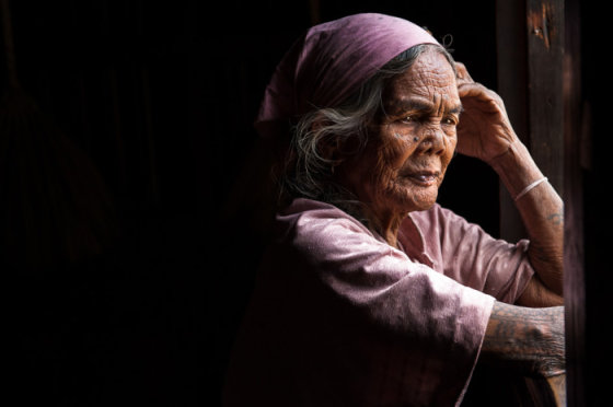 Женщина народности калинга задумчиво смотрит в окно. Татуировки на руках используются как украшения, а также свидетельствуют о принадлежности к определенному племени.