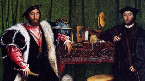 Однако наиболее знаковая картина художника не поддается прямому толкованию. Жан де Дентевиль и Жорж де Сельв, также известные как «Послы», были тщательно изучены многовековыми историками.