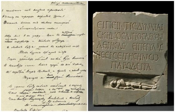 Сохранилось немало примеров античных эпитафий, а еще - эпитафия Сейкила, самая старая записанная музыкальная композиция (справа)