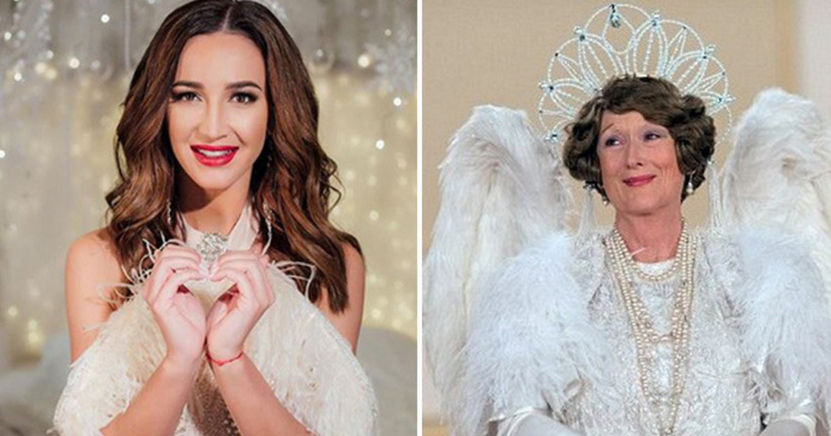 Флоренс Фостер Дженкинс в образе ангела и Мерил Стрип, играющая роль оперной певицы. | Фото: сdn1.ntv.com.tr.