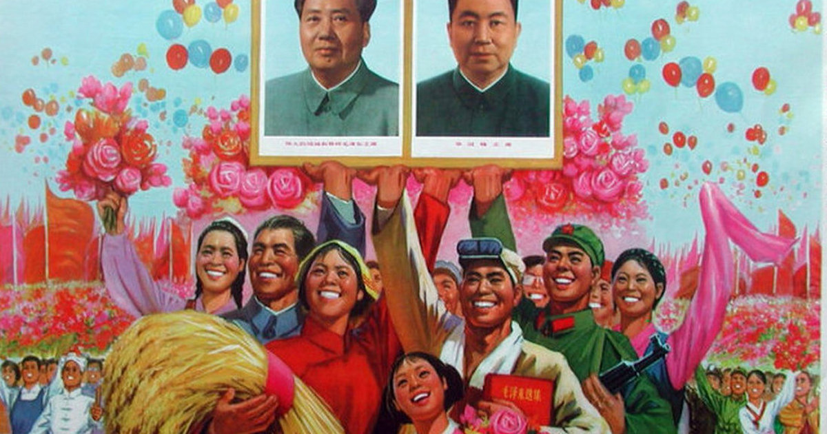 Плакат 1976 г. показывает народную поддержку Хуа Гофену, назначенному преемником Председателя Мао, который, однако, скоропостижно скончался в том же году.