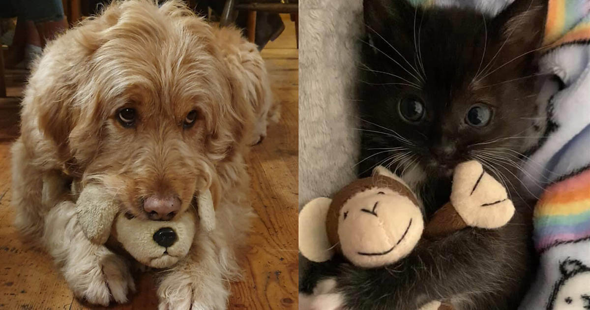 20 милейших фотографий домашних питомцев, которые доказывают, что им тоже нужны плюшевые игрушки