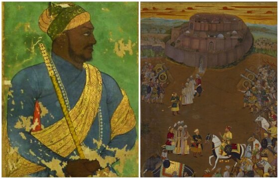 Слева направо: Император Джахангир, 1615 год. \ Малик Амбар в расцвете сил, около 1620 года.